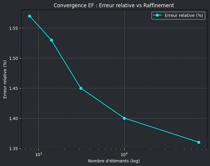 On observe que : - L’erreur diminue progressivement avec le raffinement du maillage - La convergence est typique d’une méthode d’éléments finis d’ordre 1 - Un maillage plus fin donne des résultats plus proches de la solution analytique